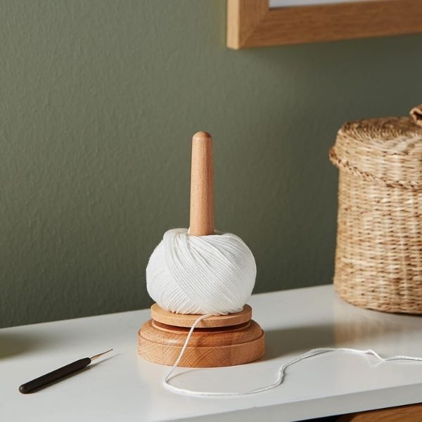 Otočný drevený držiak na priadzu – YarnSpin