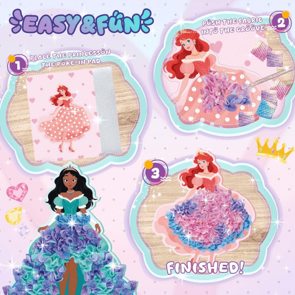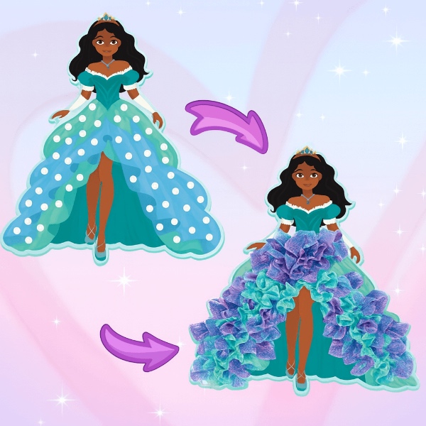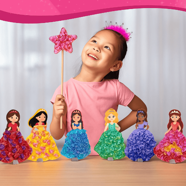 Deti s radosťou vytvoria svoje žiariace princezné bez lepidla, nožníc či farieb. Výsledkom sú krásne dekorácie, na ktoré budú hrdé.