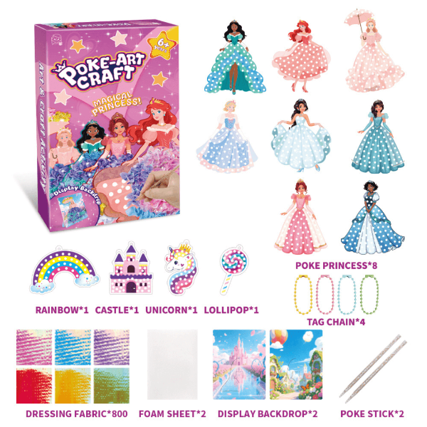 👑 Obsahuje 6 penových princezien a viac ako 700 kúskov látky