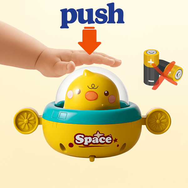 Jemným zatlačením sa vozidlo s kuriatkom pohne dopredu a povzbudzuje dieťa k pohybu a objavovaniu. Jednoduchá, ale zábavná hračka, ktorá rozvíja motoriku a zvedavosť.